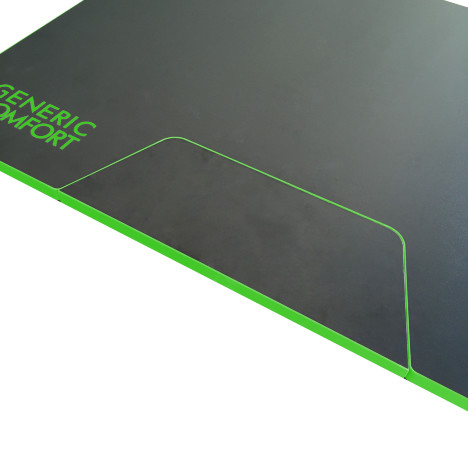 Заглушка трапециевидного выреза для стола Generic Comfort черного цвета с зелеными кромками. Выполнена в виде трапеции с основаниями 40 и 55 см, высотой 20 см. Позволяет закрыть эргономичную нишу в тех случаях, когда необходима прямая столешница. Крепежные болты и пластины в комплекте.
