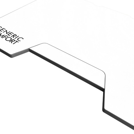 Заглушка трапециевидного выреза для стола Generic Comfort белого цвета с черными кромками. Выполнена в виде трапеции с основаниями 40 и 50 см, высотой 10 см. Позволяет уменьшить размеры эргономичной ниши в столешнице. Крепежные болты и пластины в комплекте.