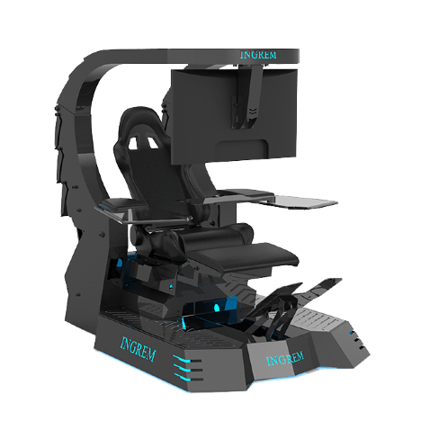 Киберконсоль Ingrem Veyron TG-GCP001 - совершенное устройство для комфортной работы за компьютером или игр. Находясь в нем, вы ощущаете себя в кабине космического корабля, где только вы, пульт управления, информация на мониторах и ничего лишнего. Массивный двухопорный кронштейн может держать одновременно три 34-дюймовых монитора или один 49-дюймовый. Каждая опора состоит из трех подвижных секций, что позволяет придвинуть мониторы почти вплотную к себе, отодвинуть или поднять их над головой. При этом спинка кресла и выдвижная поддержка ног могут переводиться в горизонтальное положение, в результате чего вы можете работать лежа. Все подвижные элементы приводятся в действие электроприводами. В основе рабочего места - усовершенствованное кресло DXRacer серии Racing, в сиденье которого встроен подогрев и массажер. Все элементы киберконсоли содержат светодиодную RGB-подсветку.