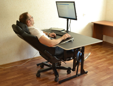 Generic Comfort Decepticon - стол механически регулируется по высоте. Работать за ним можно стоя, сидя и лежа. Столешница большая - места хватит всем необходимым предметам. С удобством разместить руки на поверхности стола позволит наклонный сегмент с эргономичной нишей .